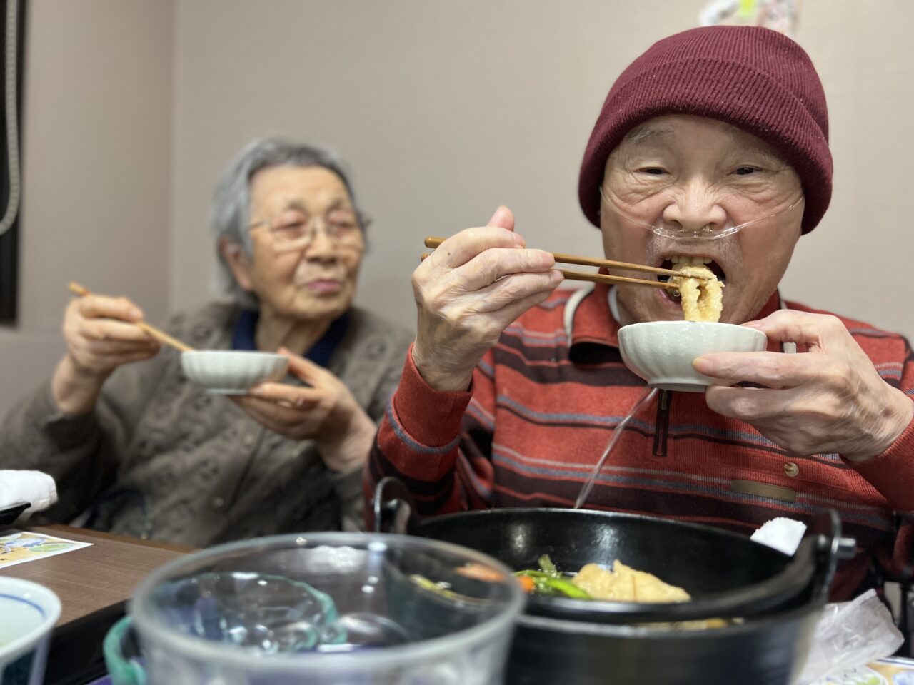 ノリノリで踊る利用者さんときり亭たん方さん&清子パートナー?