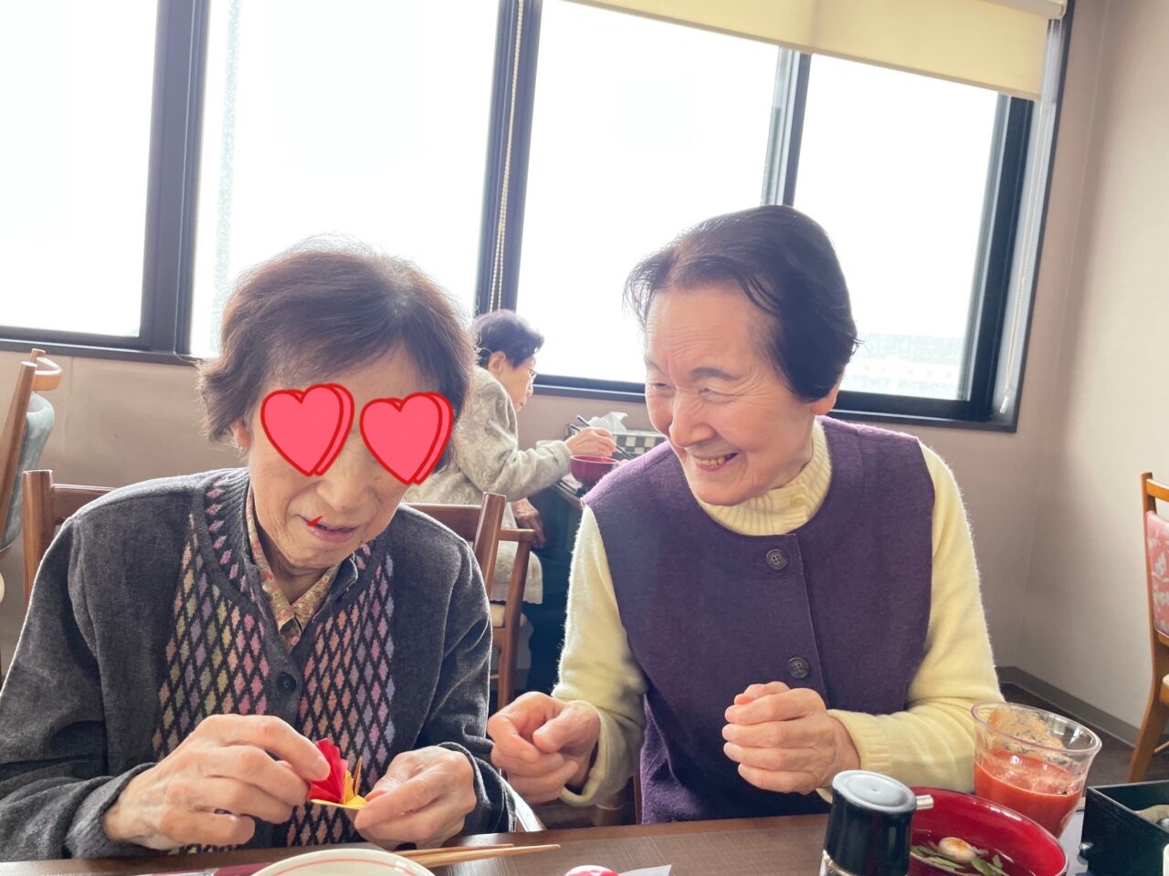 お正月に出てくるお雑煮は「神様の力を貰うためだった」と職員が雑学を言うと大きな口を開けて食べられる利用者さん達でした?笑
