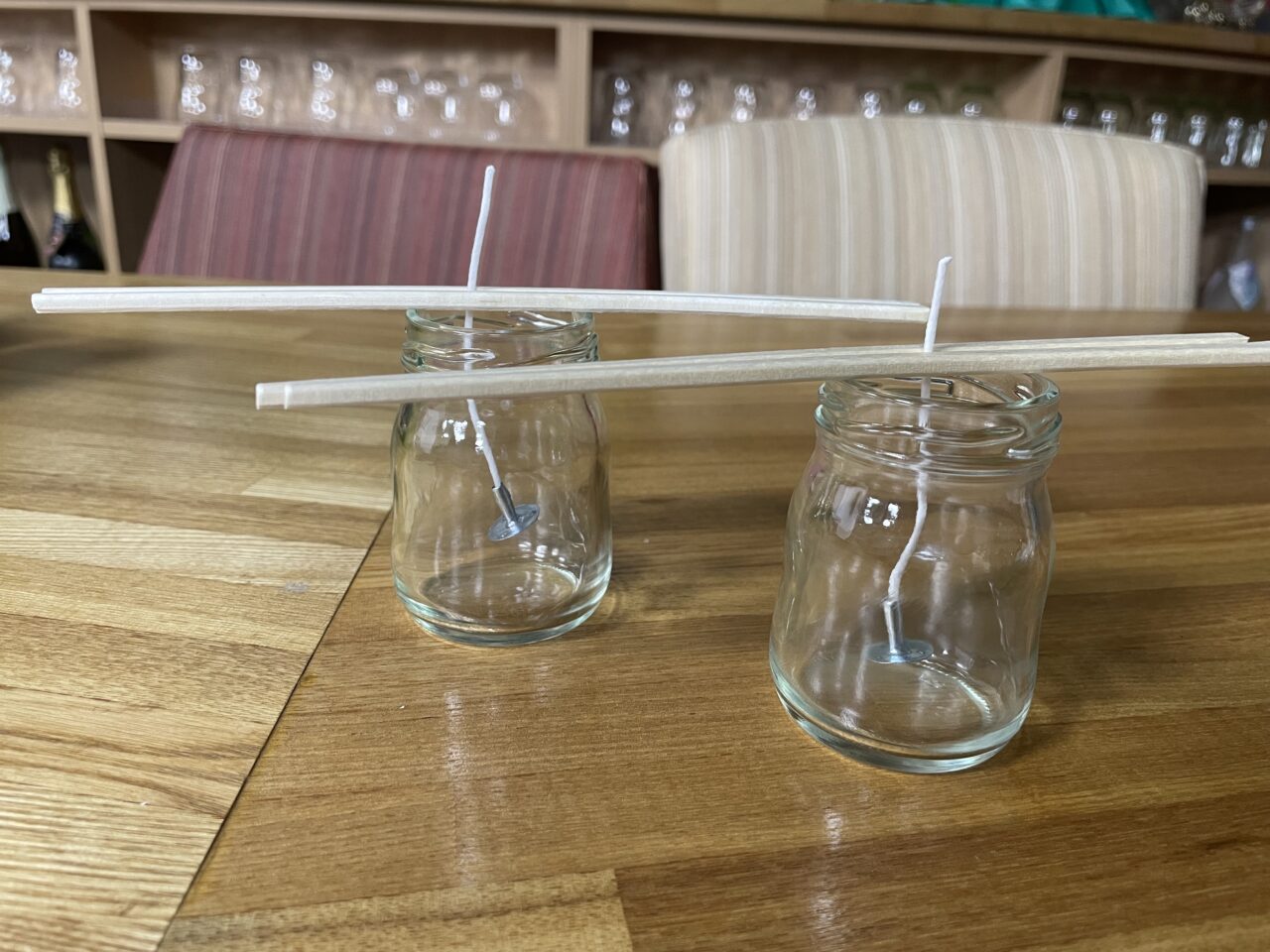 ジェルワックスが固まり、固定した割り箸を外せば完成(o^^o)