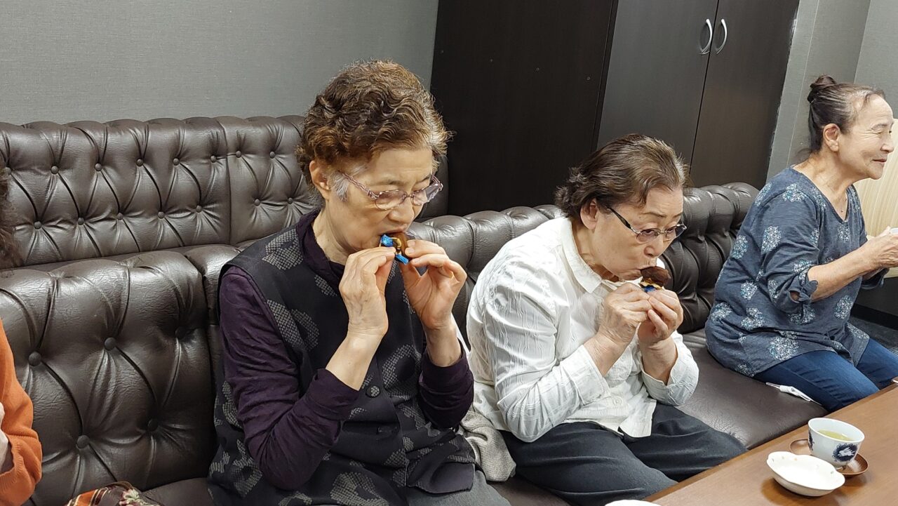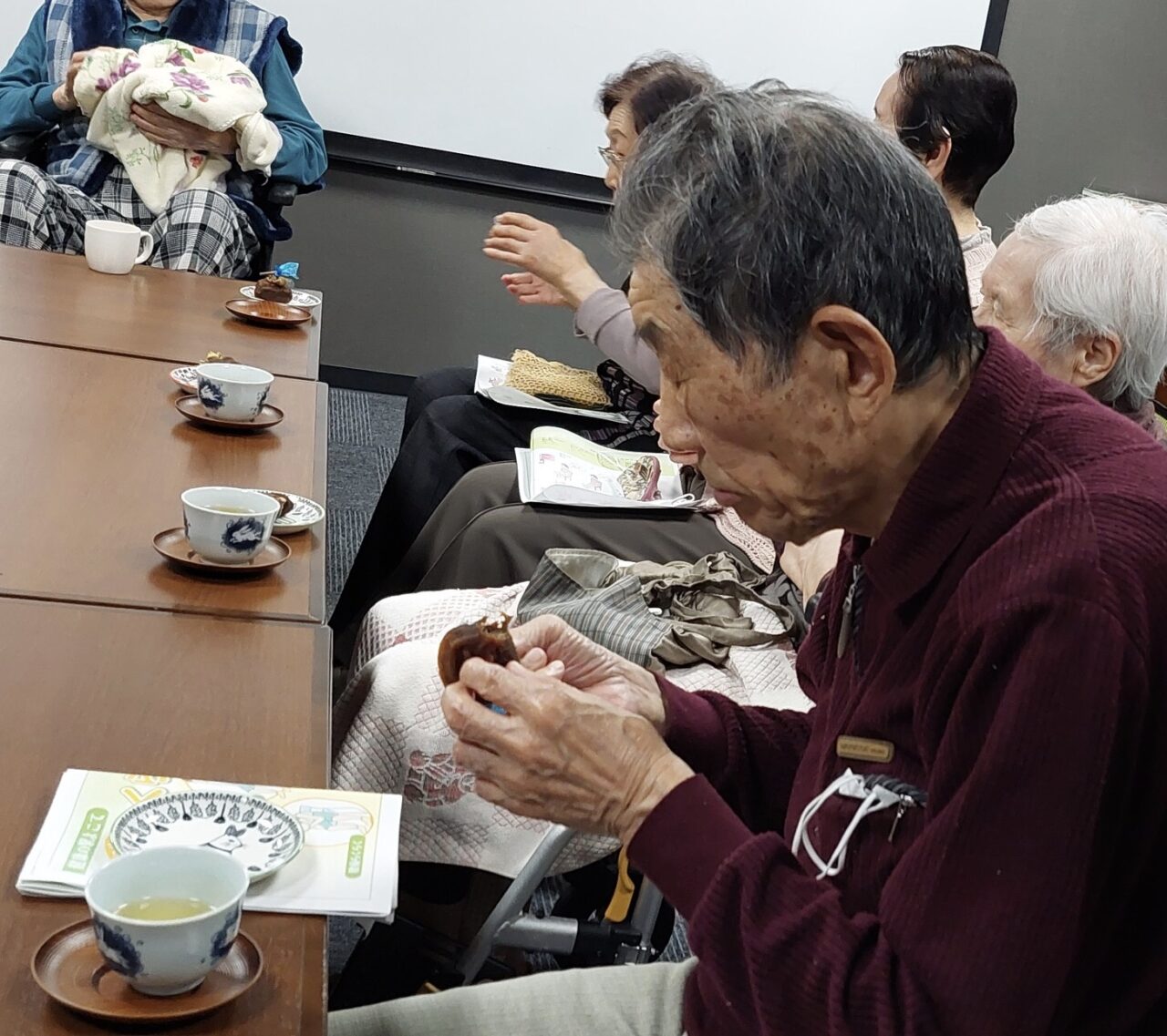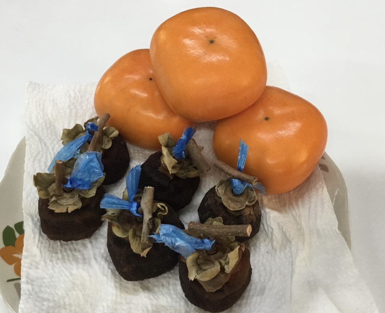 体操後には先日皆で作った『干柿』をお茶請けにティータイム??