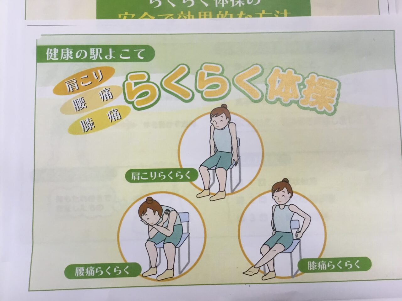 この『らくらく体操』とは横手市で推進している『健康の駅よこて』監修の体操です。“肩こり”“腰痛”“膝痛”“足腰らくらく”と、体全体を楽にする為に考えられた体操です?‍♀️