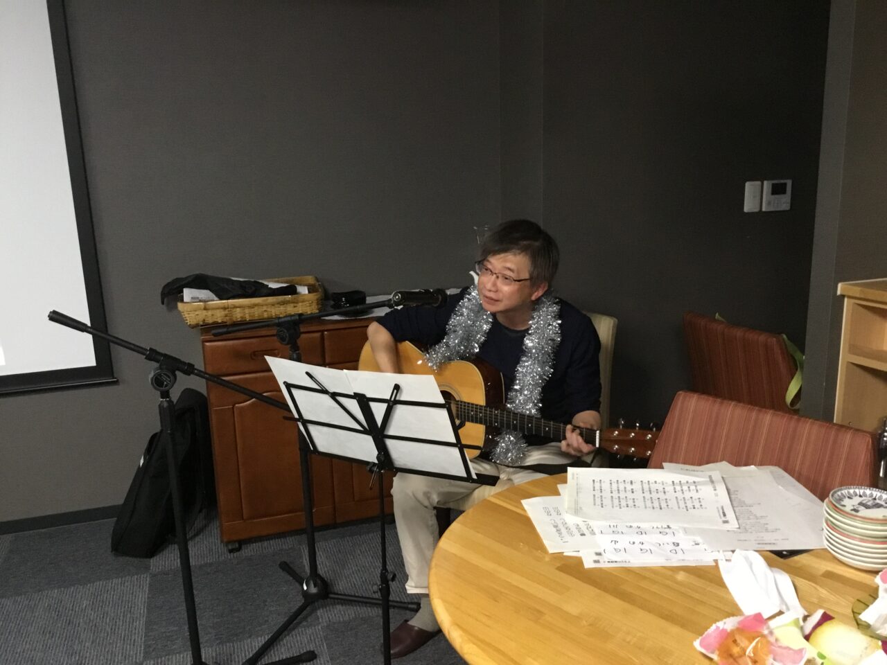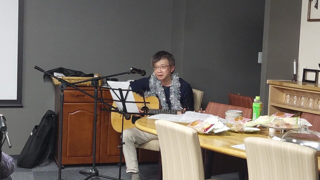 最初は靖さんのハーモニカに合わせて皆で一緒に合唱しました?