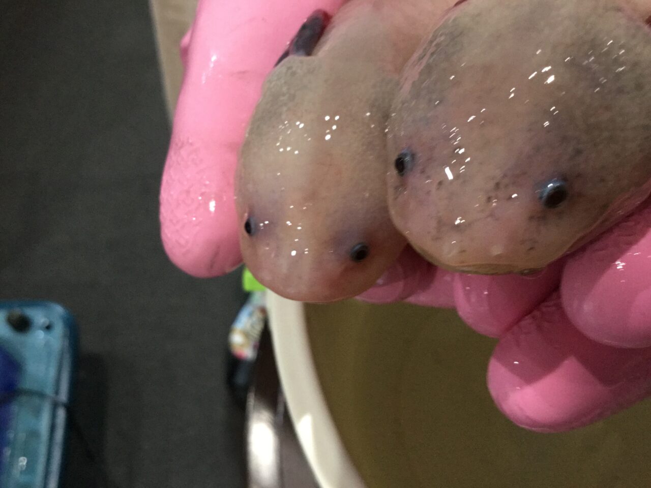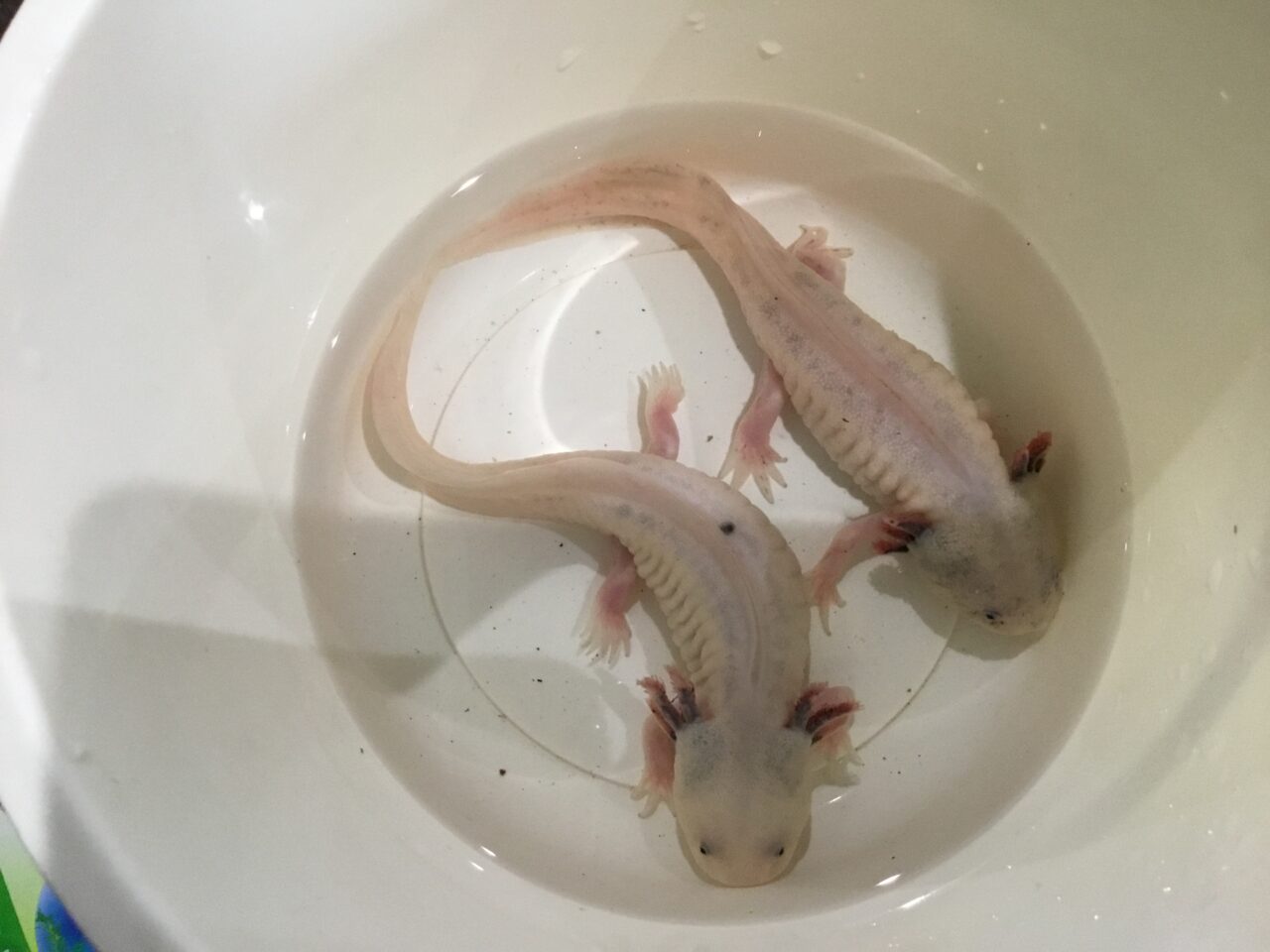 水槽に戻ると気持ちいいみたいですが、バケツで待機中のももちゃん達は真っ赤になって