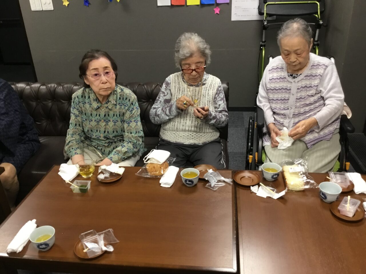 最後はお茶を飲んで一息?こちらもフレンドールの水羊羹をご用意いたしました。ひんやり涼しげな和スイーツにあっという間に完食されておりました❤︎