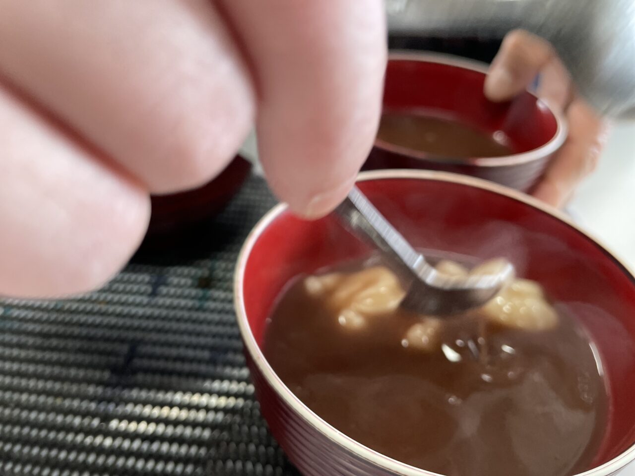 食べやすい硬さになったお餅をお汁粉に入れておいしさアップ(*≧∀≦*)