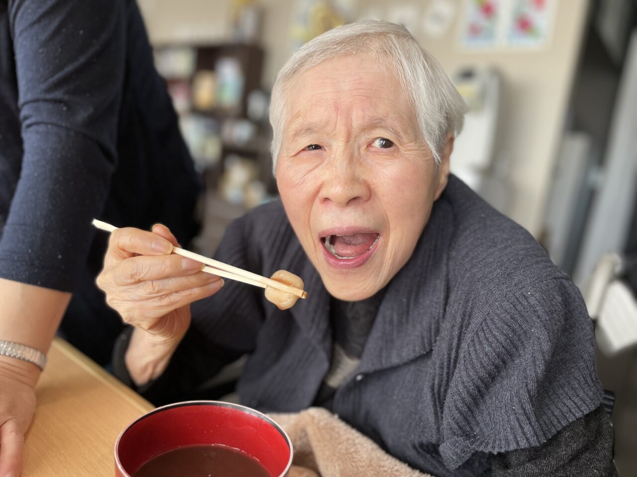 本日は鏡開きの日?‼️と、いう事でお正月の間飾ってあったお餅を、ささやかながらお汁粉に入れて皆さんに食べて頂きました☺️