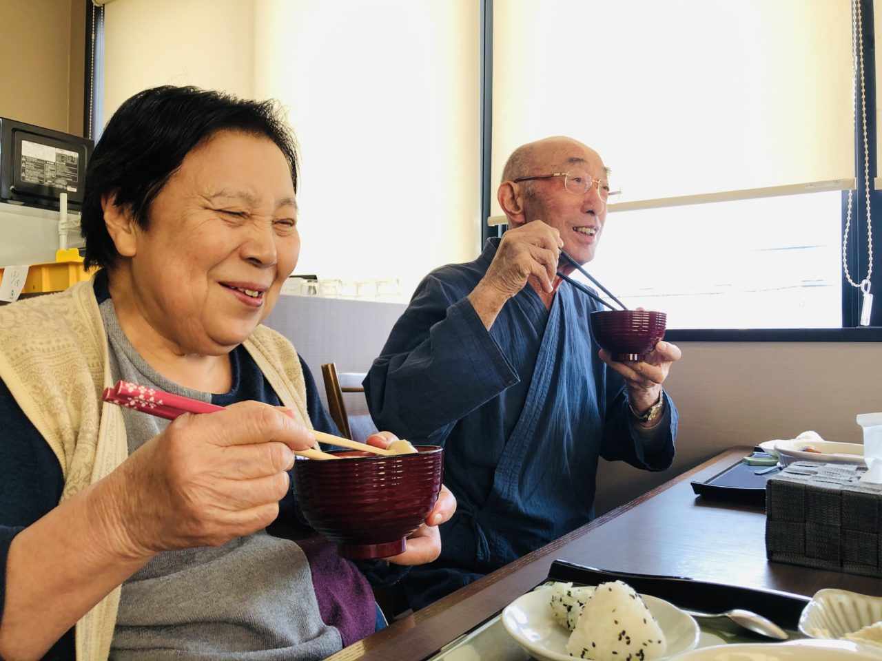 「芋の子がいいわ〜」「私は豚汁!」と、みなさんにも早速選んでいただき提供させていただきました?