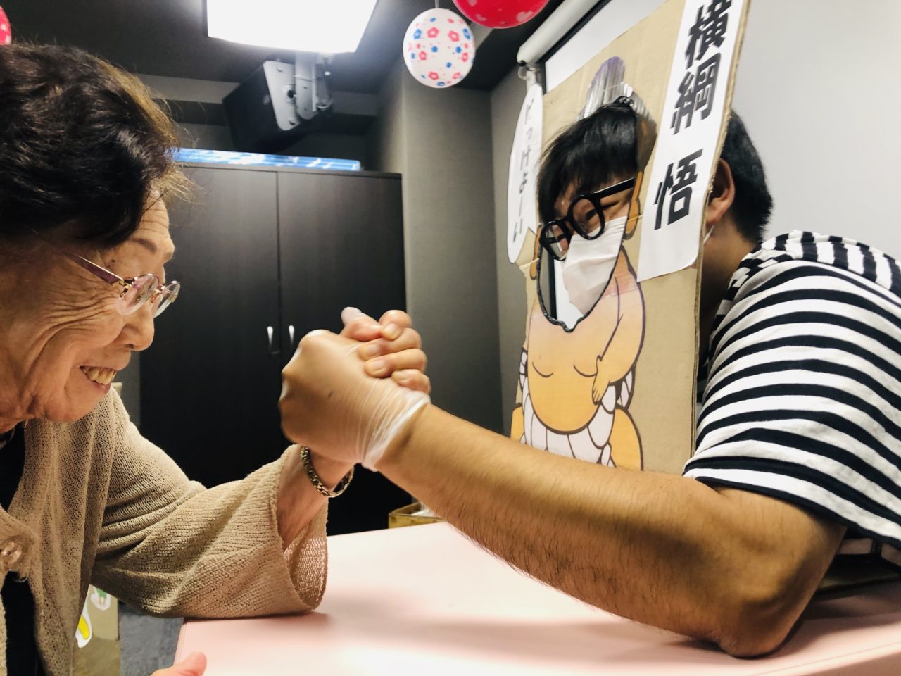 続きまして‼️一番大人気‼️腕相撲マシーンこと、横綱悟くん?