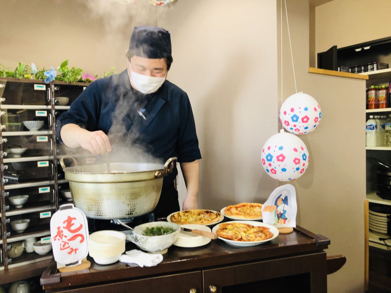 昼食では屋台メニューという事で、レストランでは一冨士さんが串焼き、もつ煮、3種のピザ?を提供します!ラウンジでは職員が焼きそば、ベビーカステラ、タコさんウインナーをcooking?????その他にも将樹パートナーお手製きゅうりの漬物?や枝豆もご用意っ!