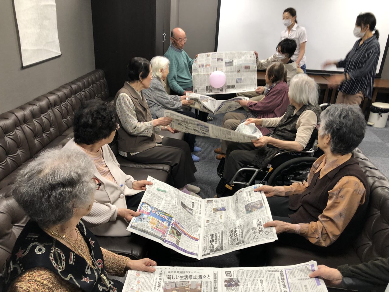 新聞紙と風船でこんなに運動の幅が