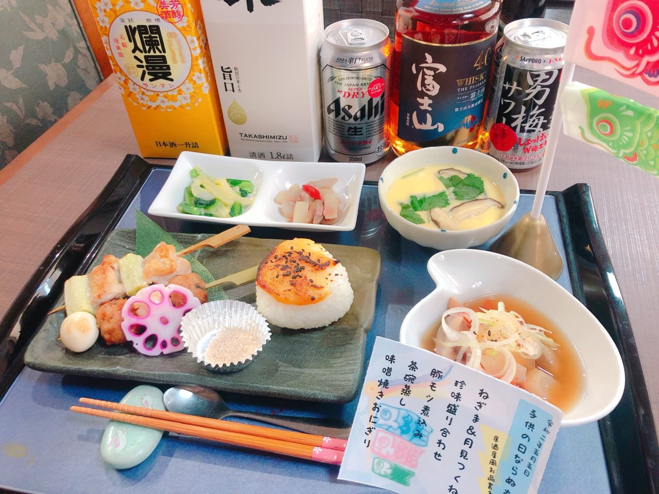 別館では本日こどもの日ならぬ大人の日と題しまして一富士さんに居酒屋風メニューを作って頂きました?