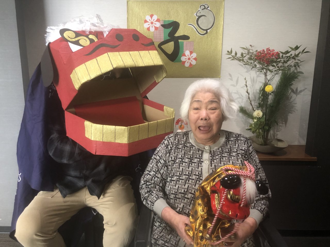 続いて、別館パートナーお手製☆獅子舞の登場です‼️‼️
