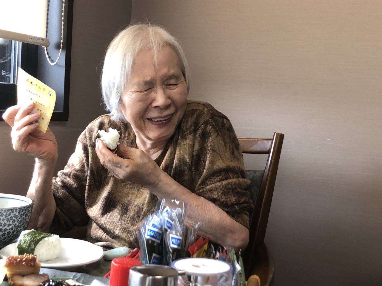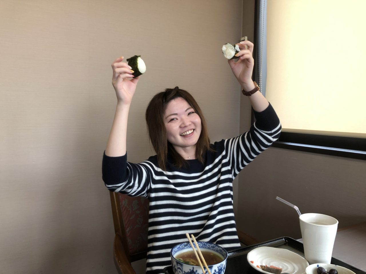 おにぎりが似合う伊藤パートナーと、一関パートナーもこの表情?