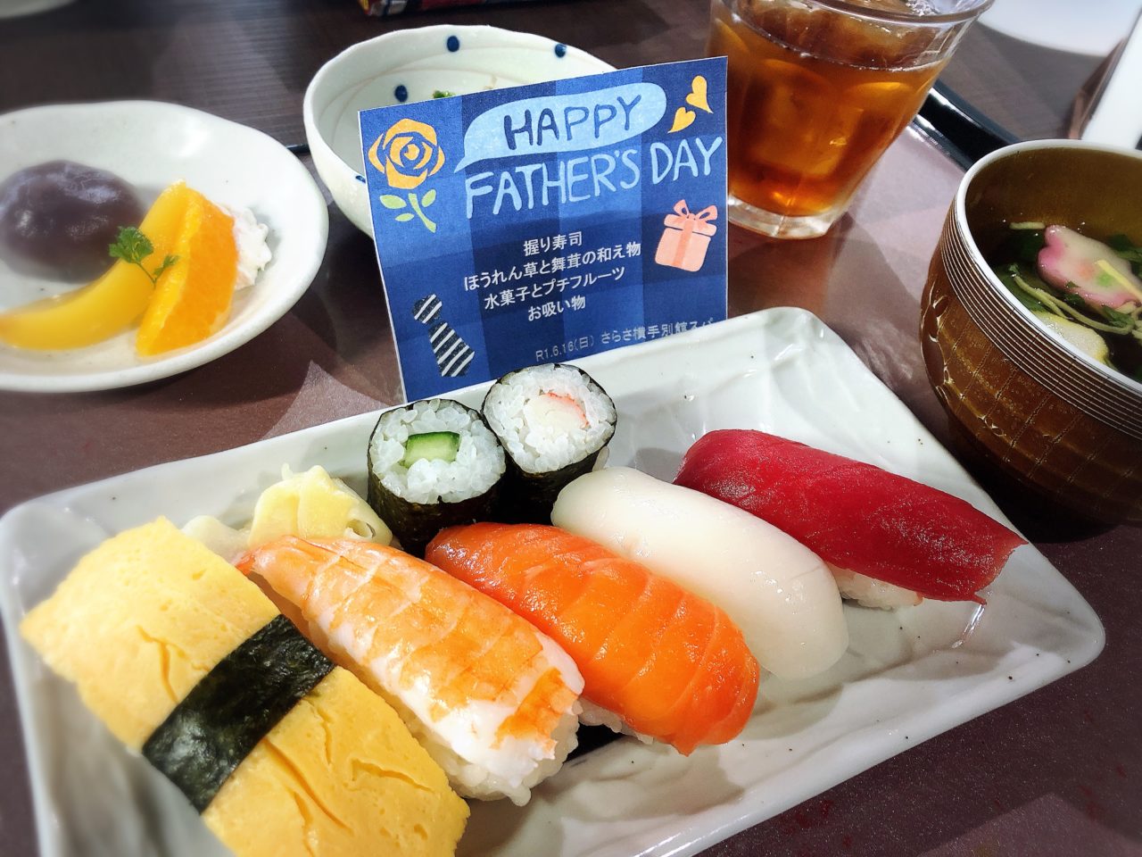 先日の『父の日??』別館スパでは昼食に、握り寿司を提供致しました?