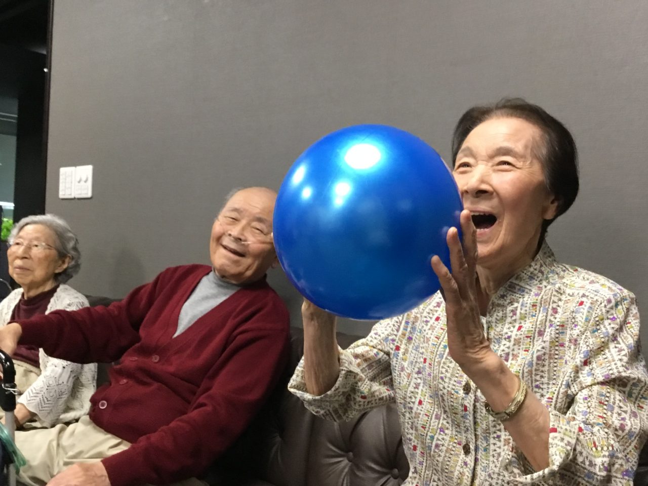 午後のラウンジにて風船バレー?を行いましたよ(°▽°)?