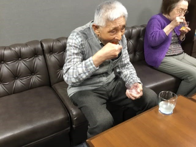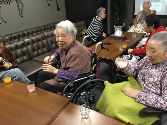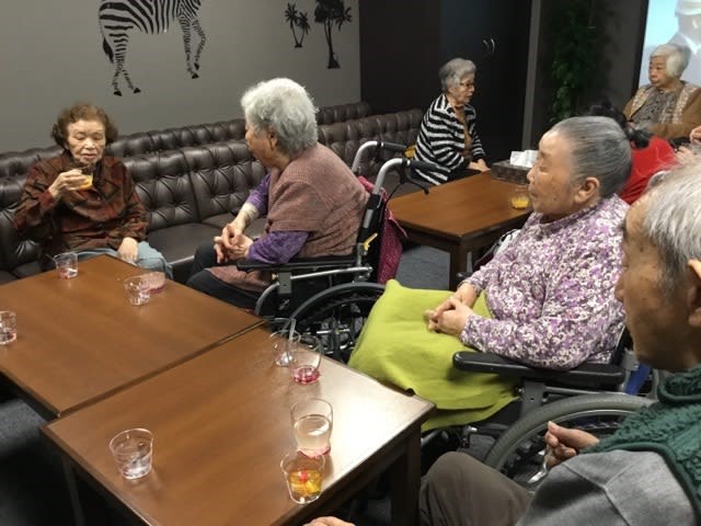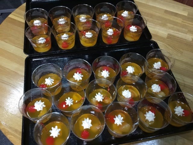 お茶請けは職員手作りのフルーツ入りゼリーです ?
