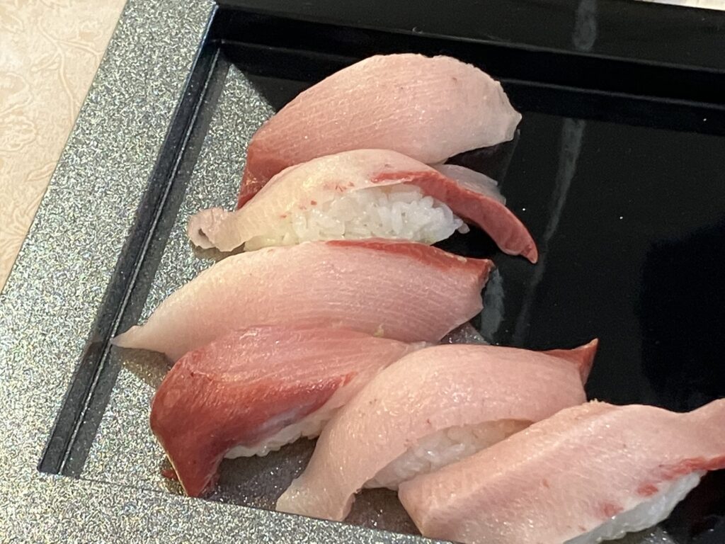 ?お寿司五点盛り(ブリ・ウニ・海老・鮪・サーモン)