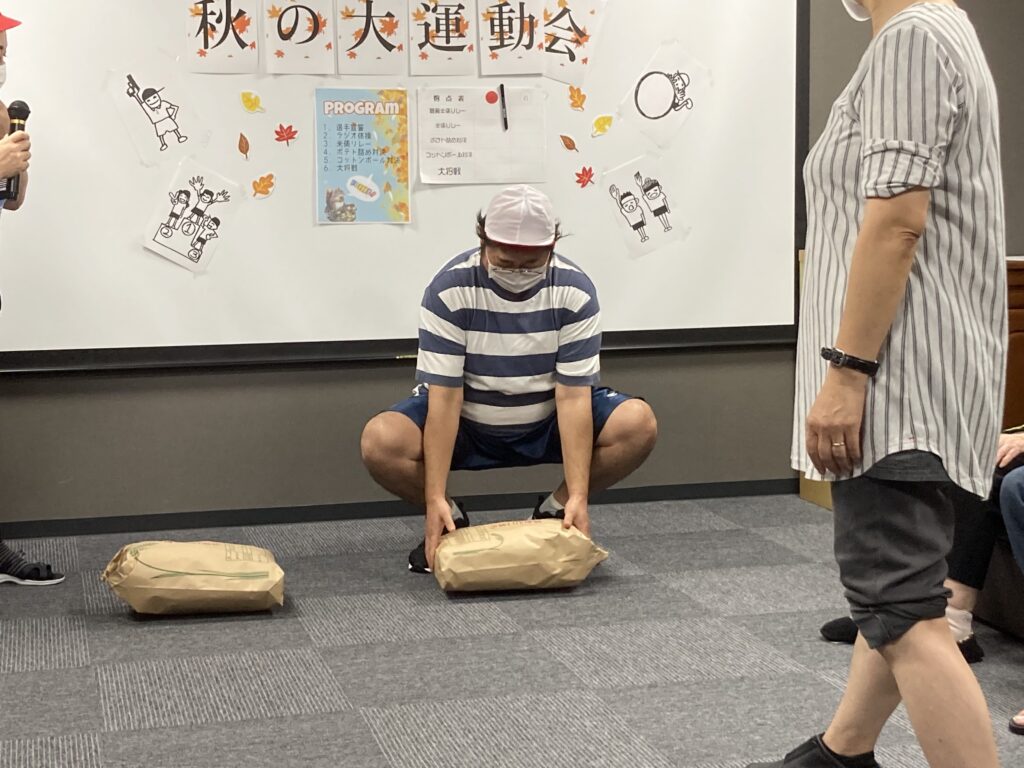 重く運べるかリレーは職員みんな全力で足プルプルさせながらの演技でした(笑)