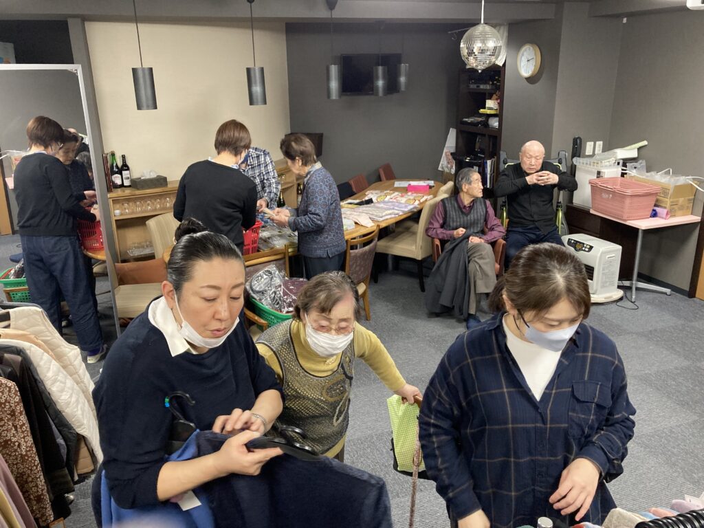 「こっちの色はどう?」「これ着てみようか」等、ご利用者さん同士で見立て合いながら皆さん買い物を楽しまれております♪