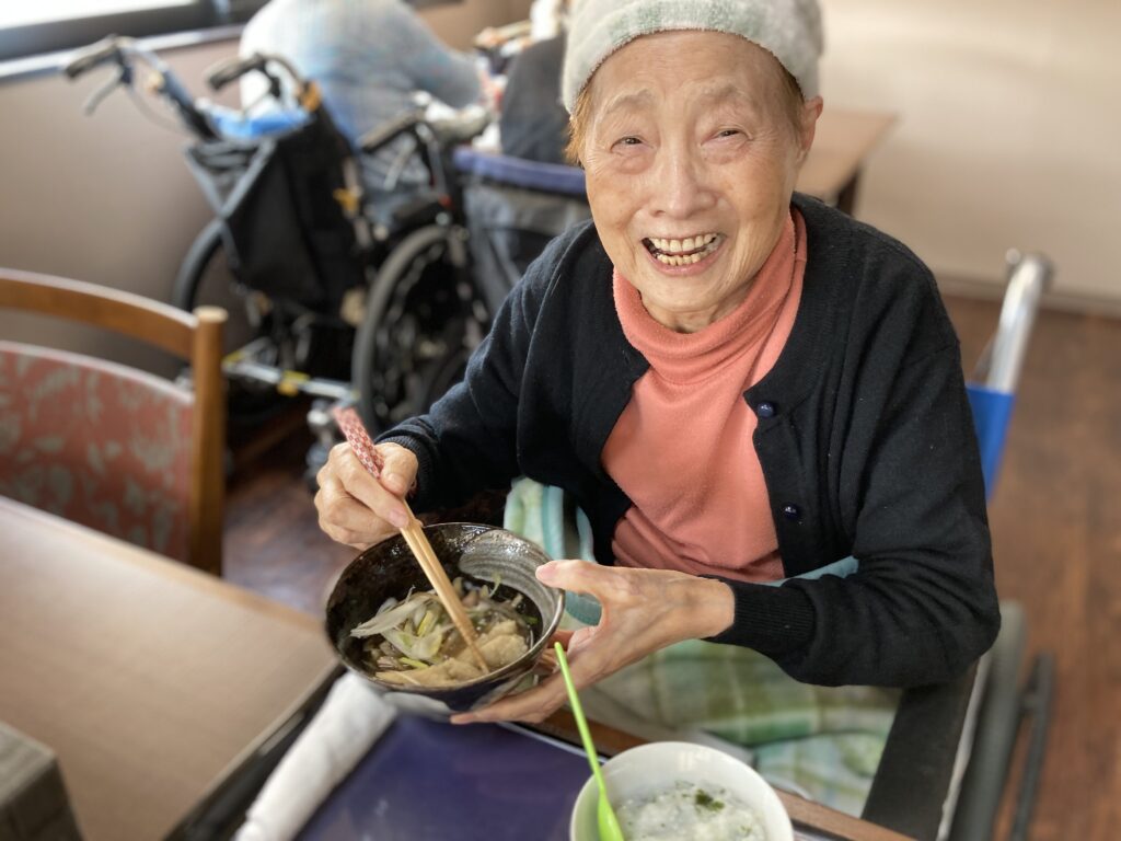 男性利用者さんは晩酌をしながら談笑し召し上がられておりました?