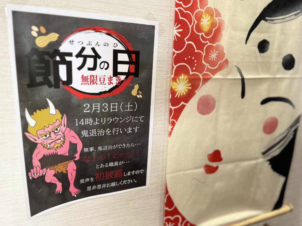 別館スパでも鬼退治をする為、みなさんのお力をお借りしましたよ!