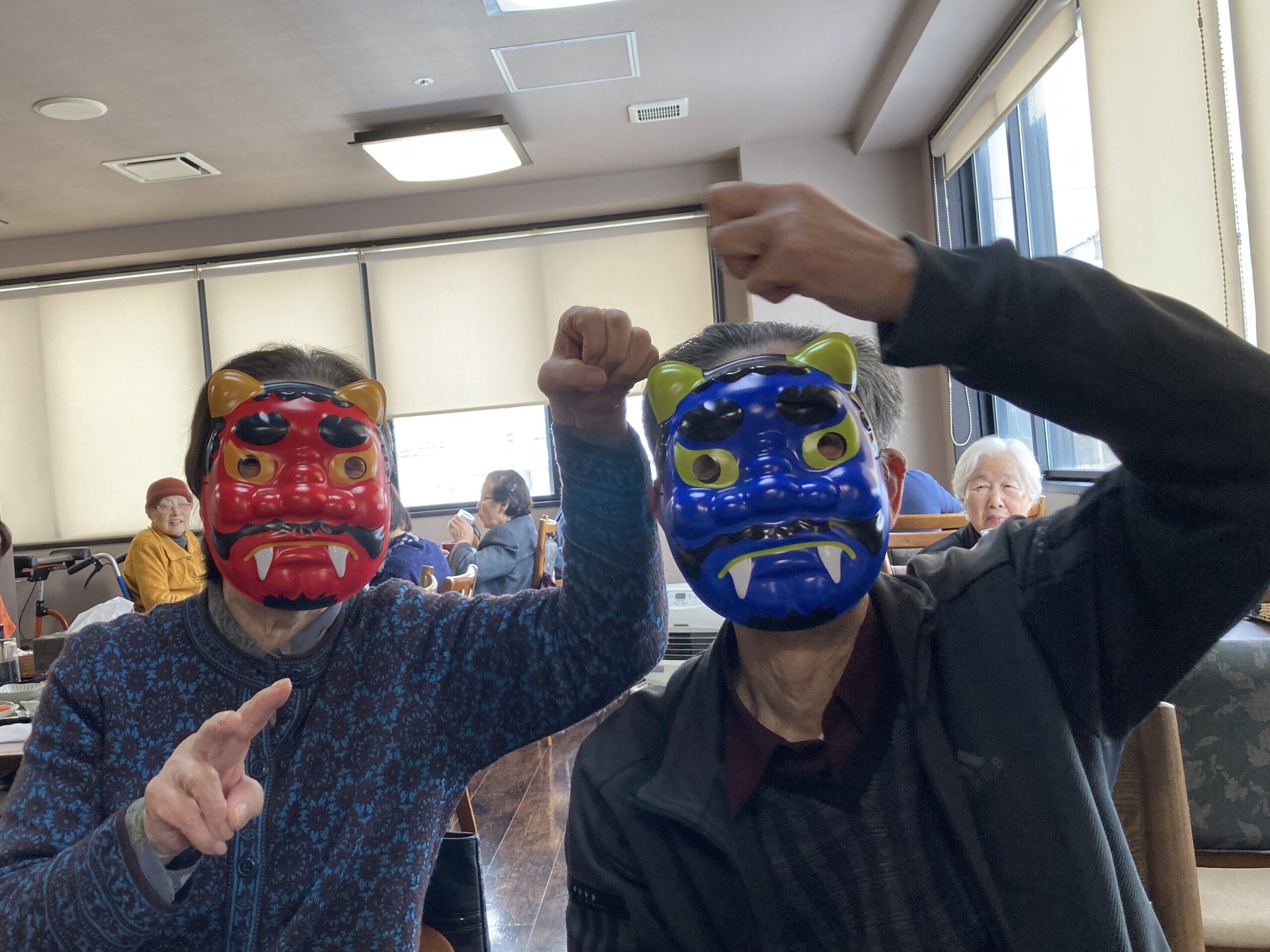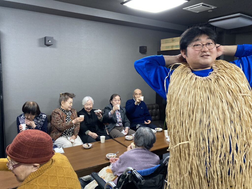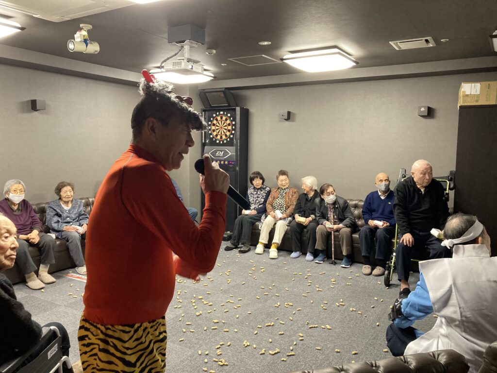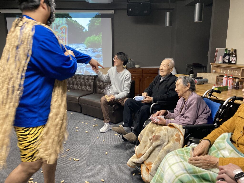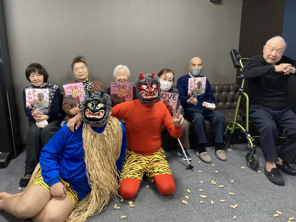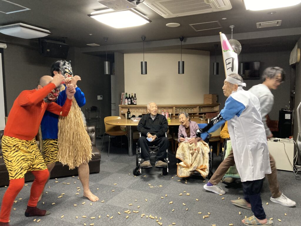 あらっ!皆さん豆を投げるのではなく拍手?で鬼達をお出迎え⭐︎