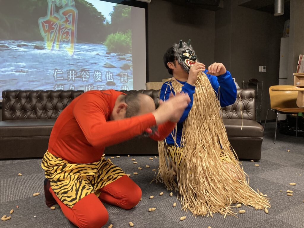 無事に鬼退治も出来たところで?とある職員の美声を披露??