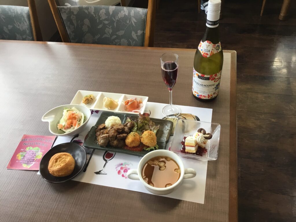 別館では、「ジョルジュデュブッフ ボジョレー ヌーボー」「岩手県花巻市エーデルワイン ヌーボー」「長野県塩尻市ワイナリーこだわりのグレープジュース」他スパークリンググレープジュースをご用意致しました🍷
