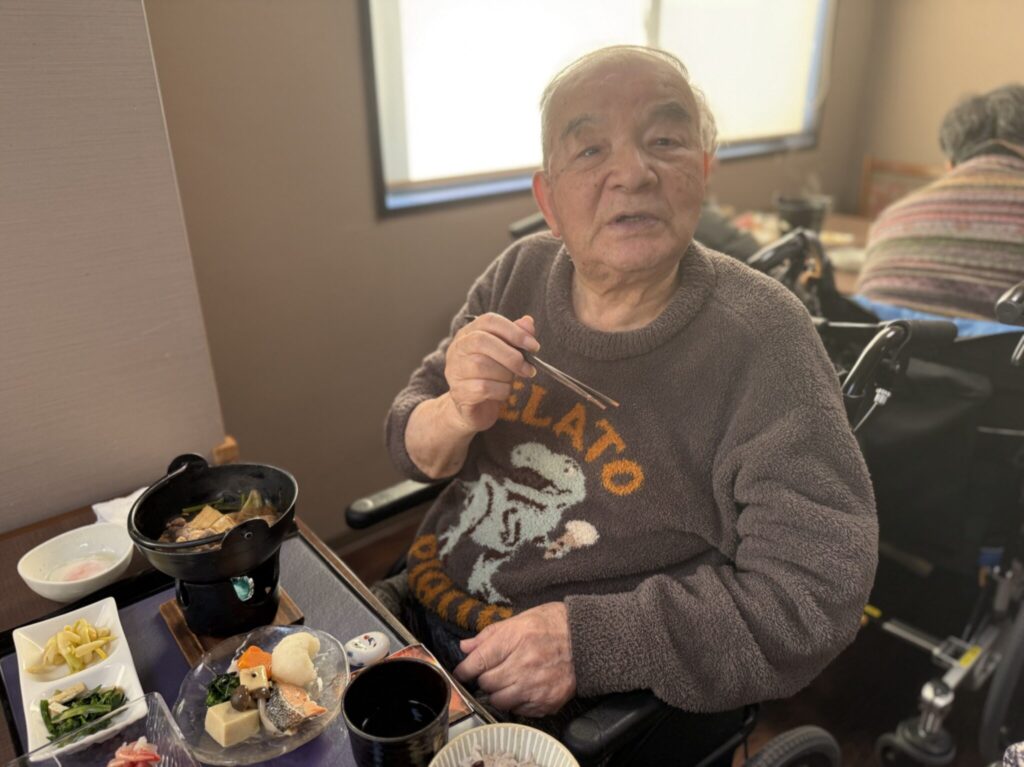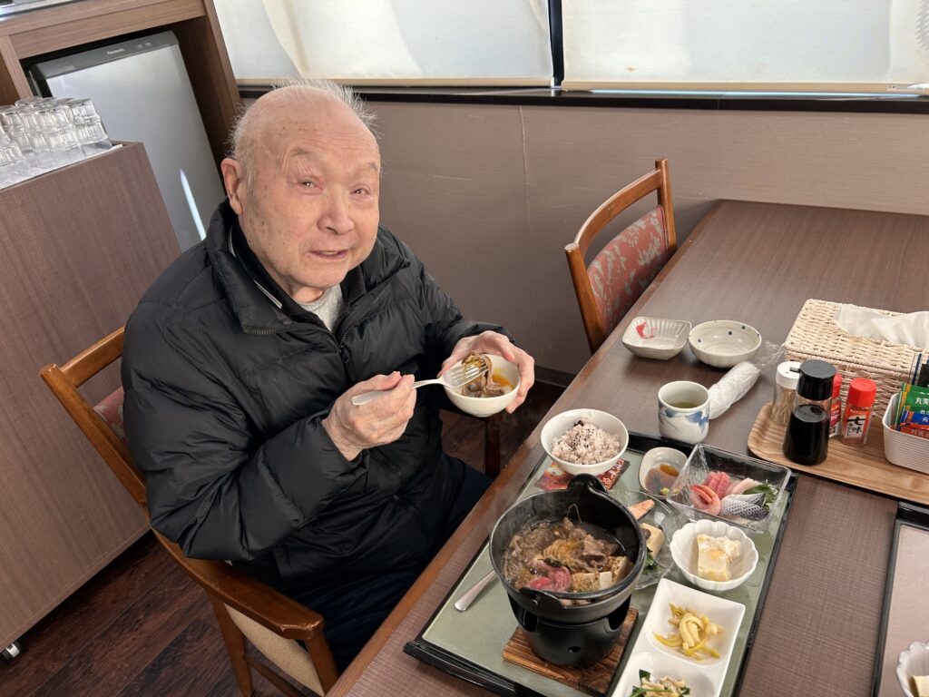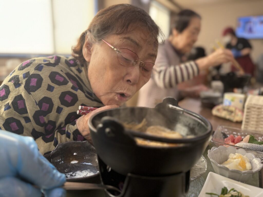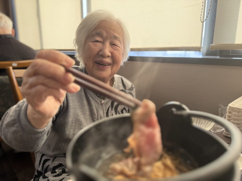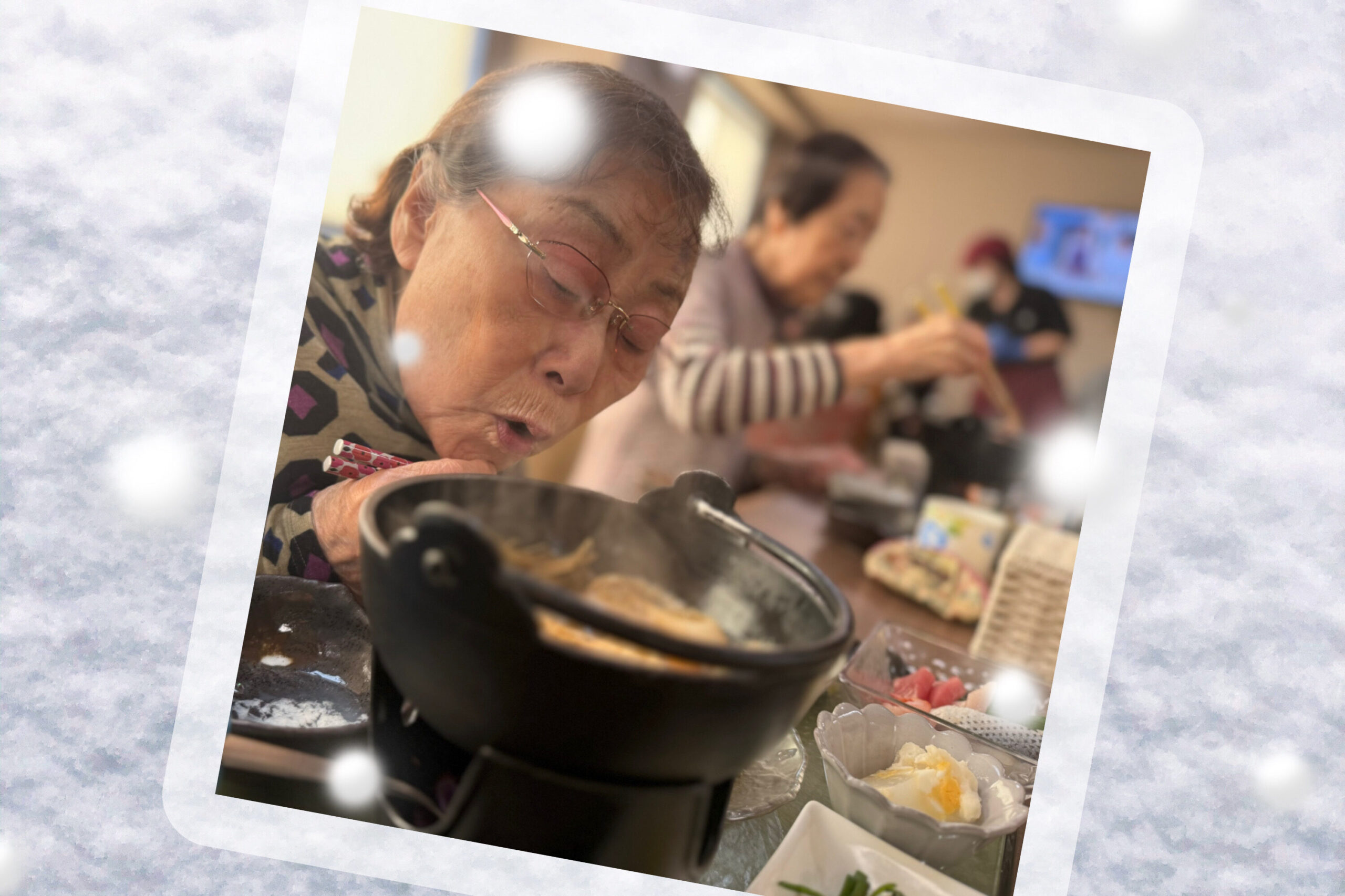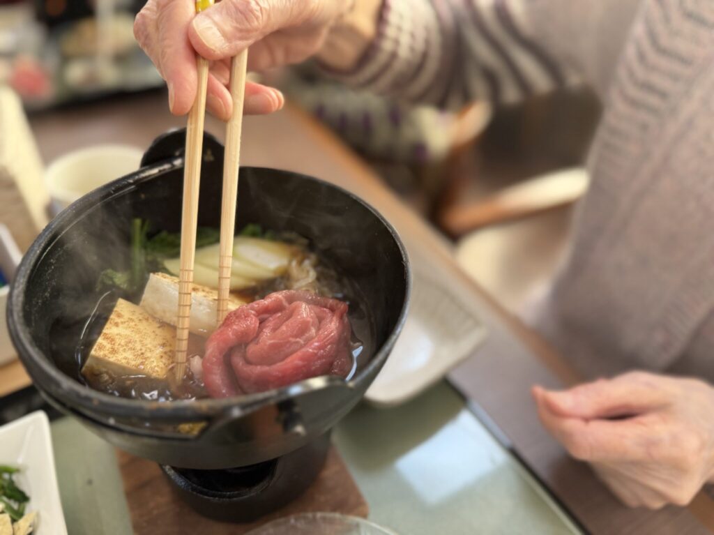 1人すき焼き鍋でアッツアツ🔥フーフー🌬召し上がって頂きます♪