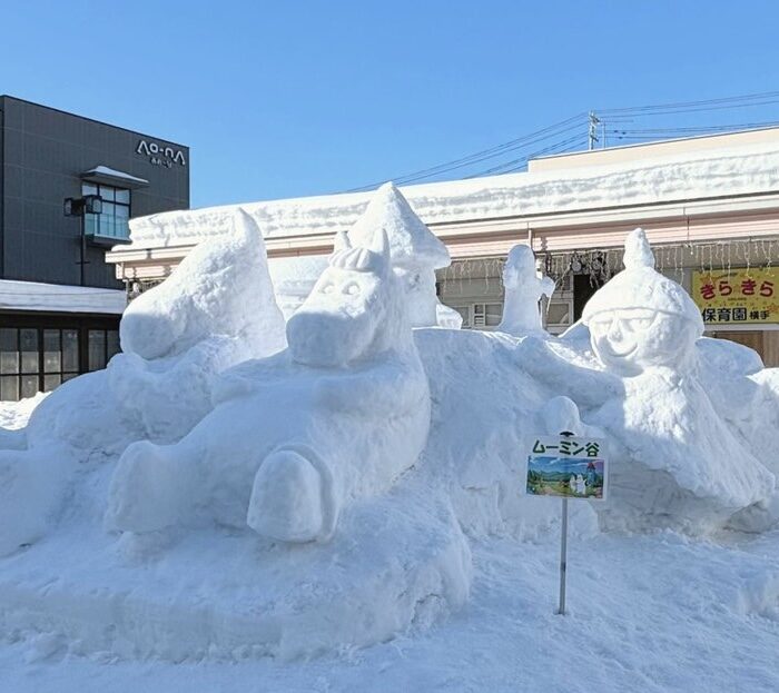 横手駅前イースト広場の会場ではムーミン谷が出来上がっております!