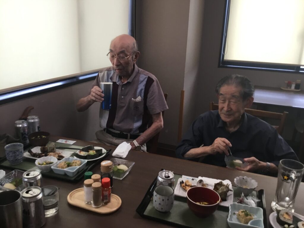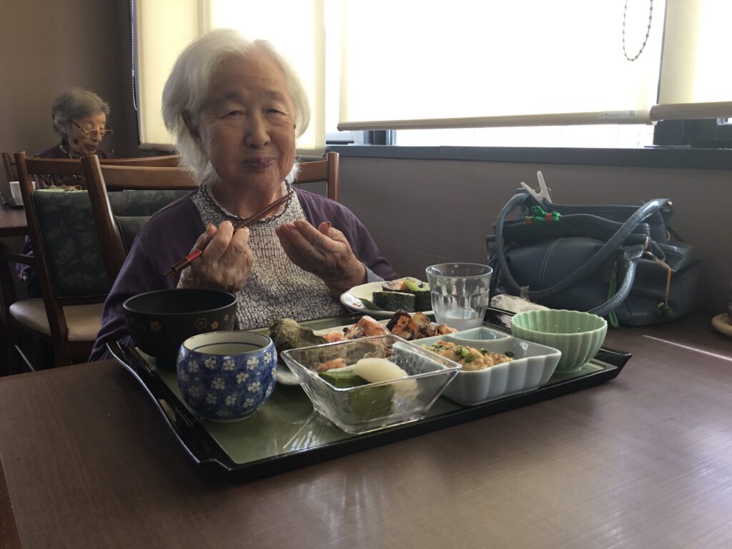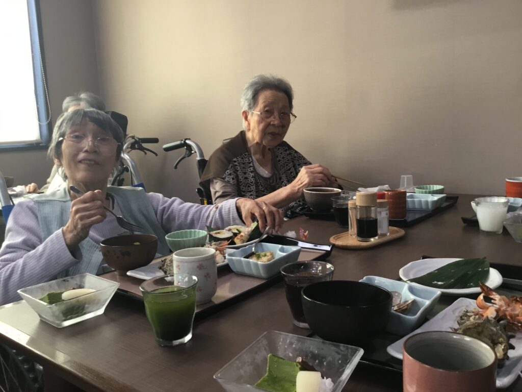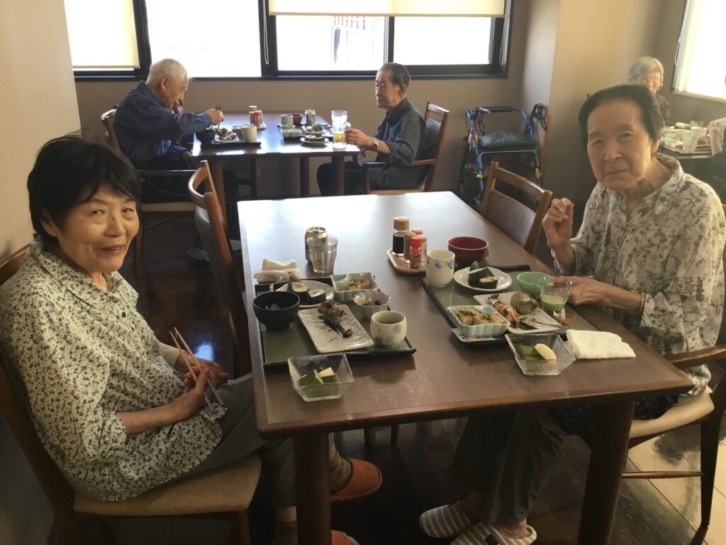 美味しいいい匂いだ😄とOさん。美味しいですね。食べやすく切っていただいて…とNさん