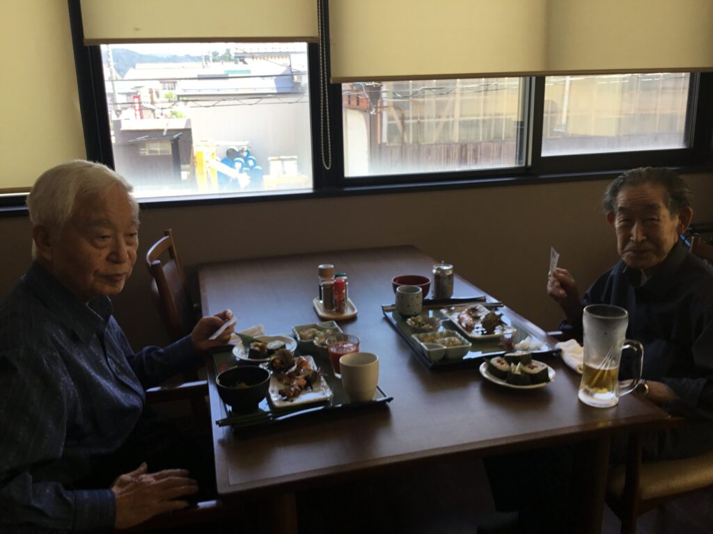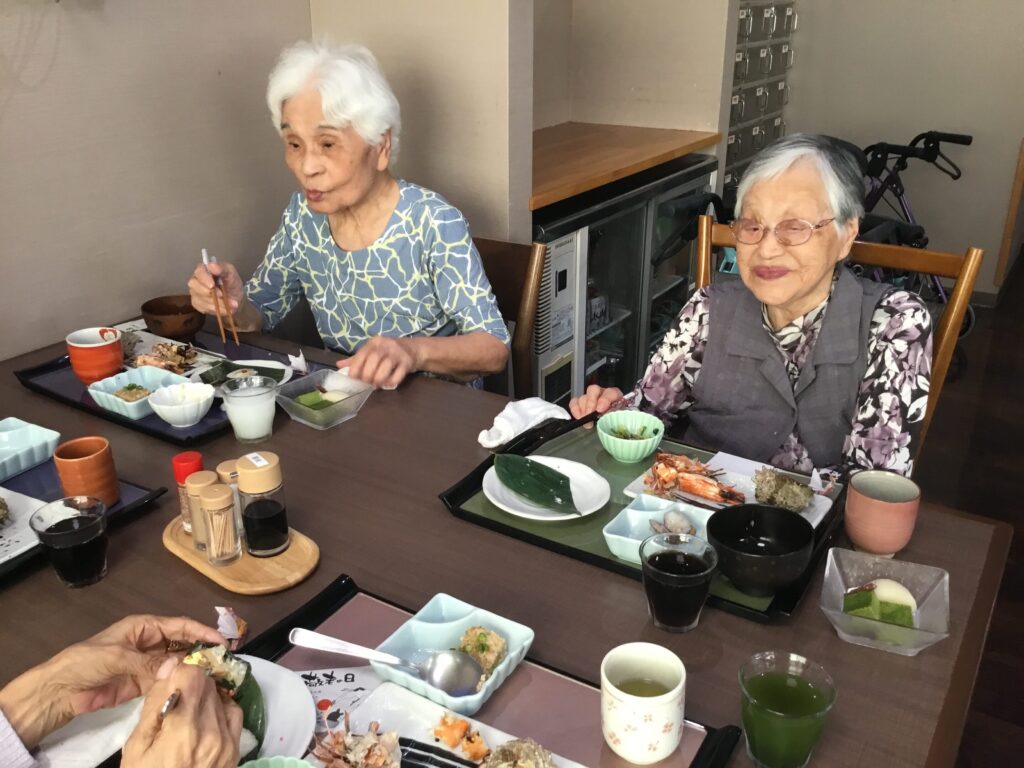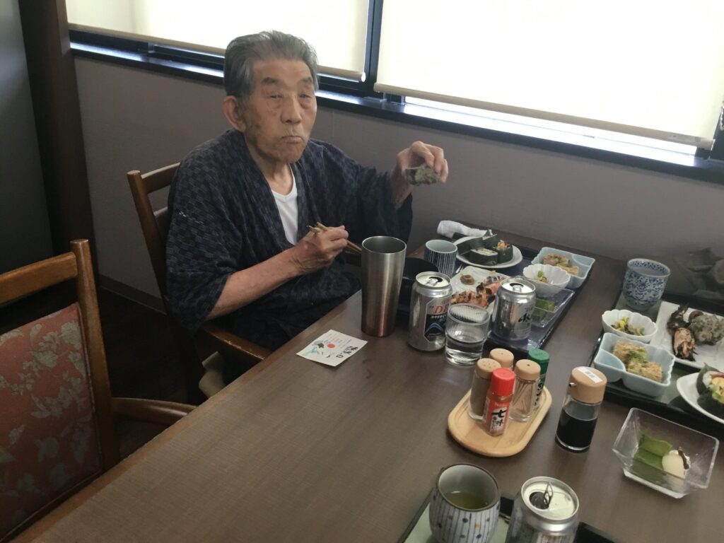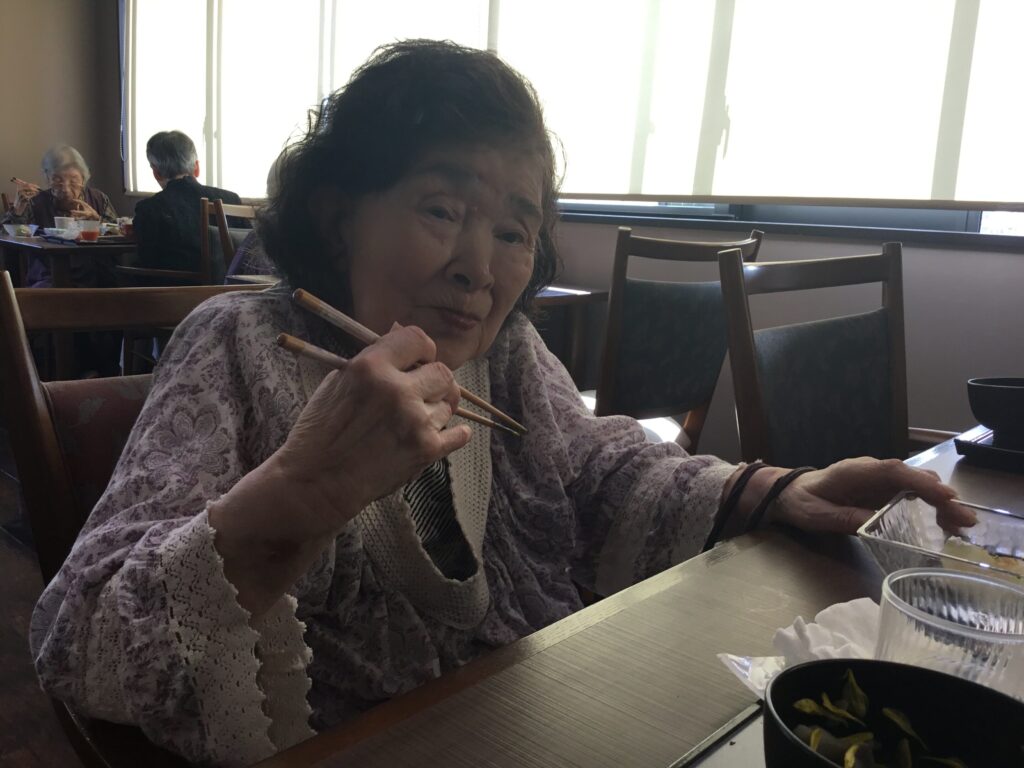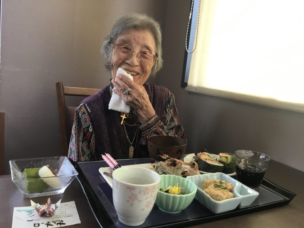 美味しいいい匂いだ😄とOさん。美味しいですね。食べやすく切っていただいて…とNさん
