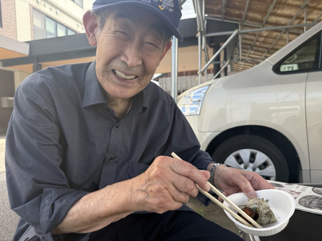 真剣な顔のAさん😆怒ってはいませんよ😕サザエを食べている最中です😁