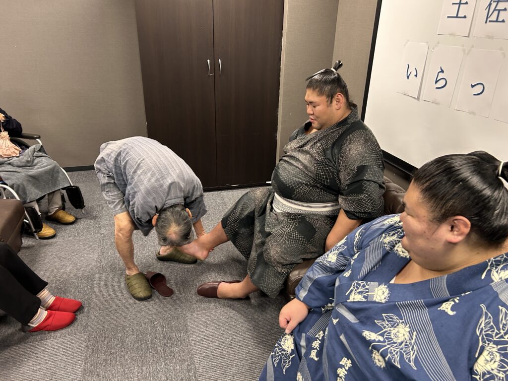 力士の登場に「でっけなー」「カッコいい」など皆さん話されており、早速質問タイムに🙋‍♀️