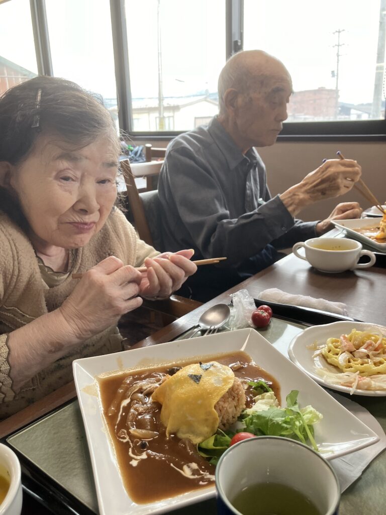 オムライスと対面した瞬間、何気に皆さんニヤニヤして自然と笑顔が溢れます😊