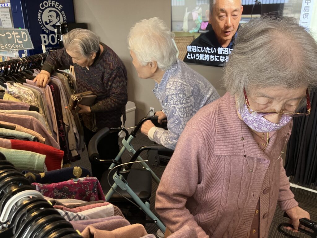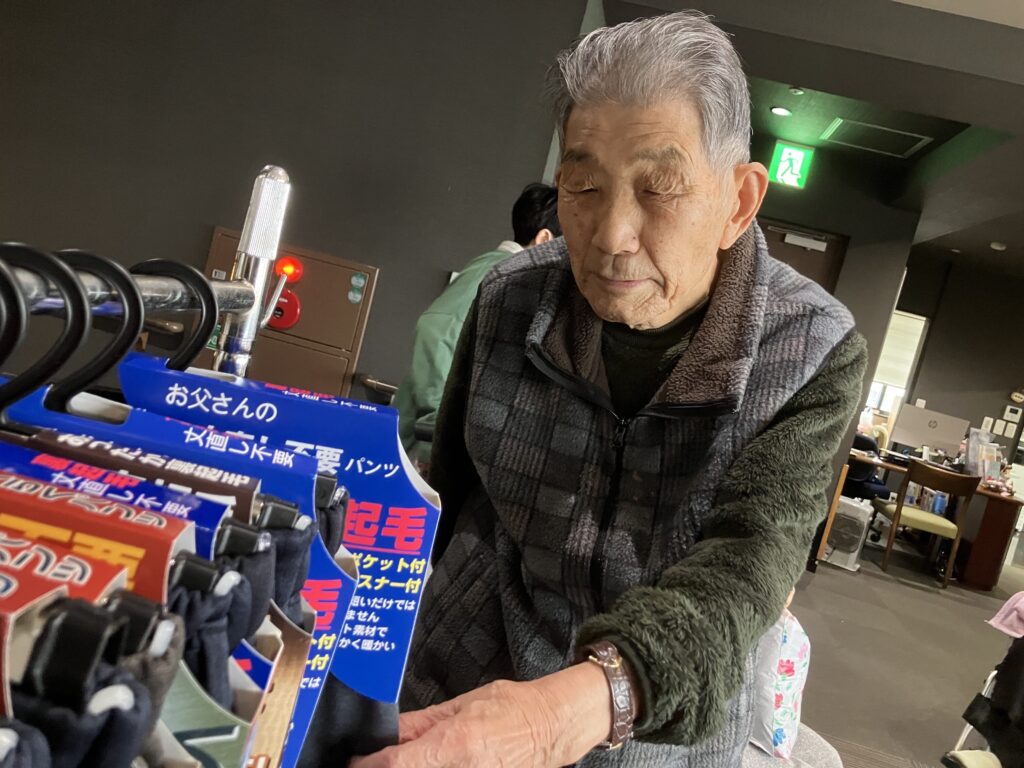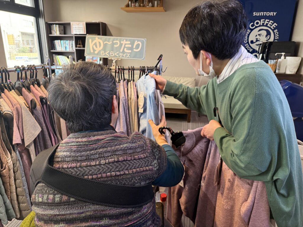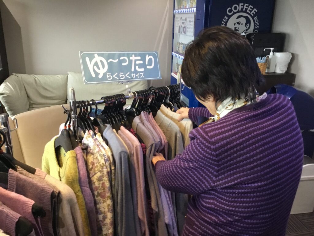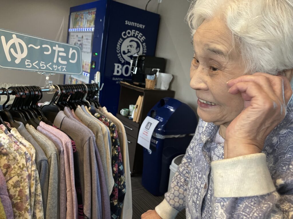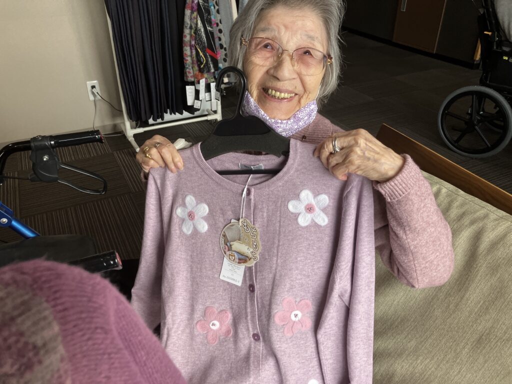 「いっぱいあって悩んでしまう🤔」とHさん♪さらさに入居されて初めてのお洋服の移動販売に「こんな事もやってくれるんだね⭐️」と、喜ばれていらっしゃいました(゚∀゚)👋
