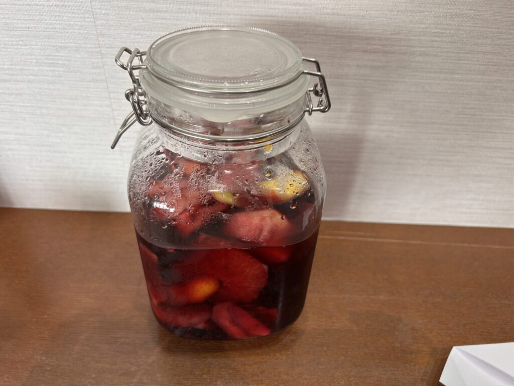 昼食には、松井パートナー手作りのサングリア🍷オレンジ🍊キウイ🥝ブルーベリー🫐レモン🍋ハチミツ🍯を入れ一晩寝かせてワインとフルーツが絶妙なバランスでしたよ✌️