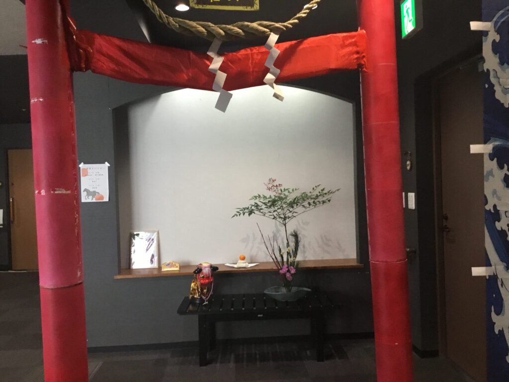 二階受付は、別館スパの顔‼️エレベーターを降りて正面には毎年恒例『大鳥居』⛩️