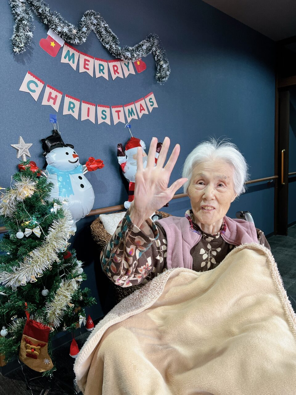 Iさんは膝掛けが欲しいと仰っていたのでチェック柄の膝掛けと、おしゃれ好きなIさんにズボンをプレゼントさせていただきました?”
