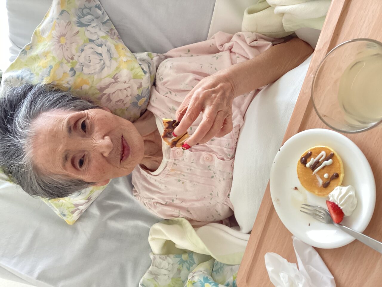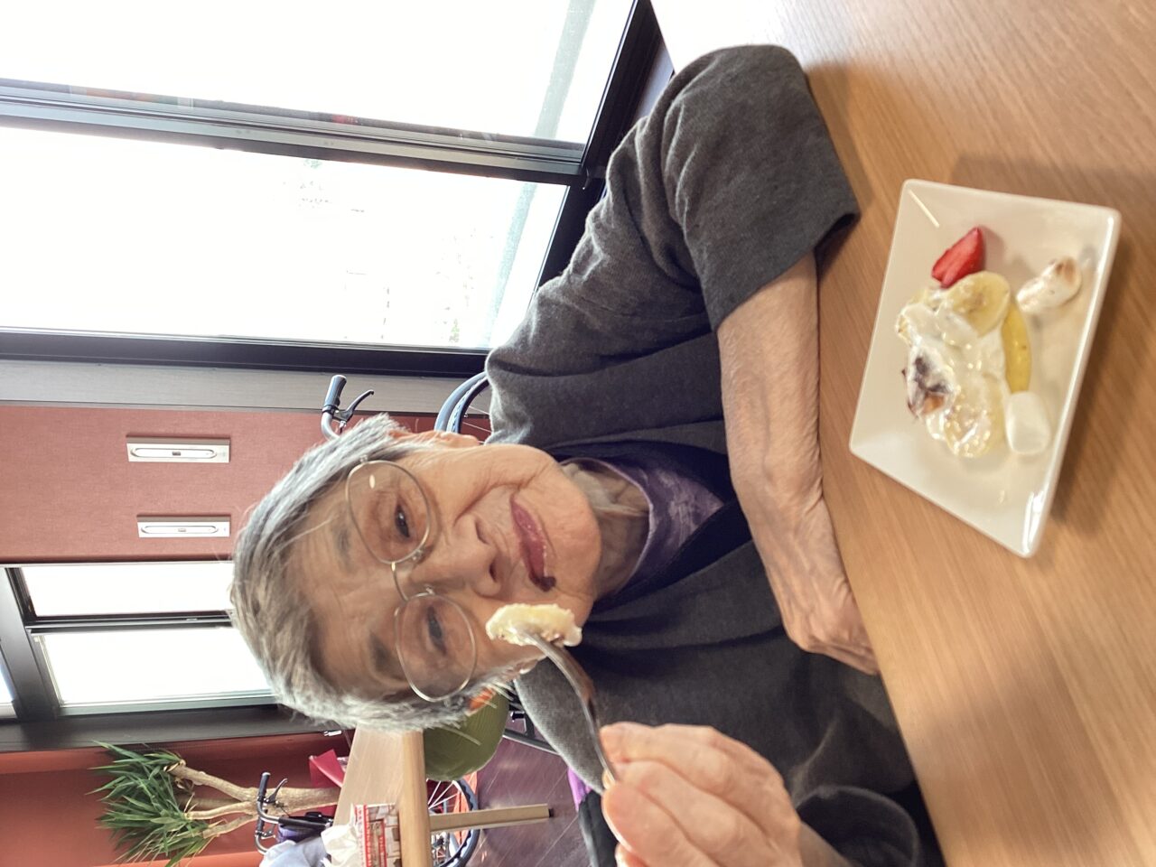金曜日は午後からのお茶会がお休みの日ということで、3階フロアではパートナーが作った焼きたてのホットケーキをみなさんに召し上がっていただきました?