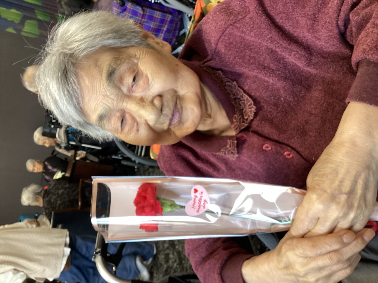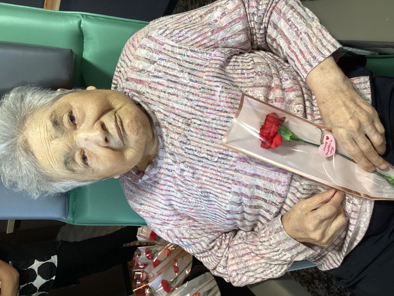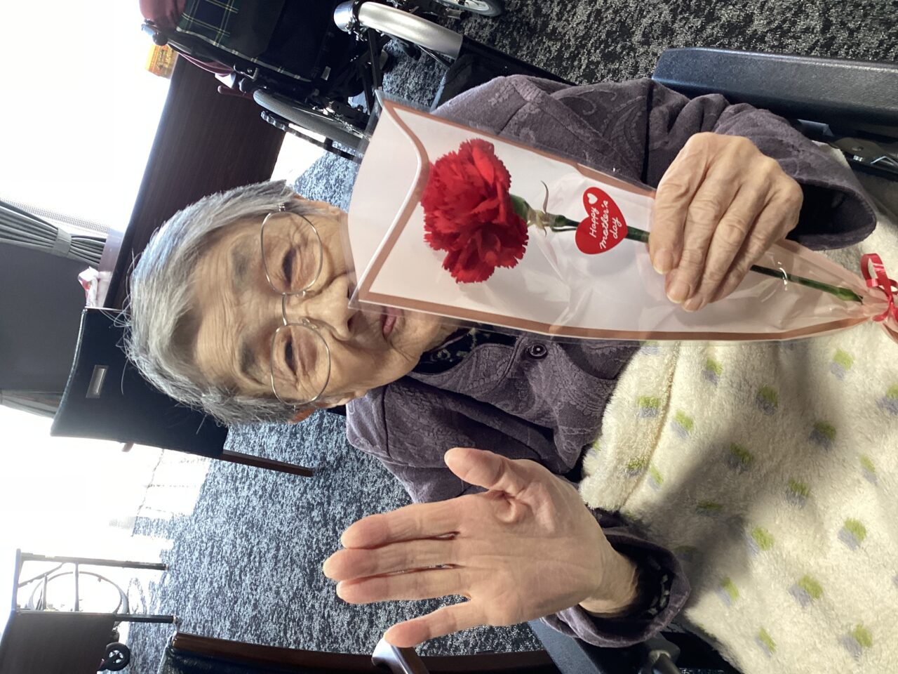 女性利用者さんへ感謝の気持ちを込めて、カーネーションのプレゼント?