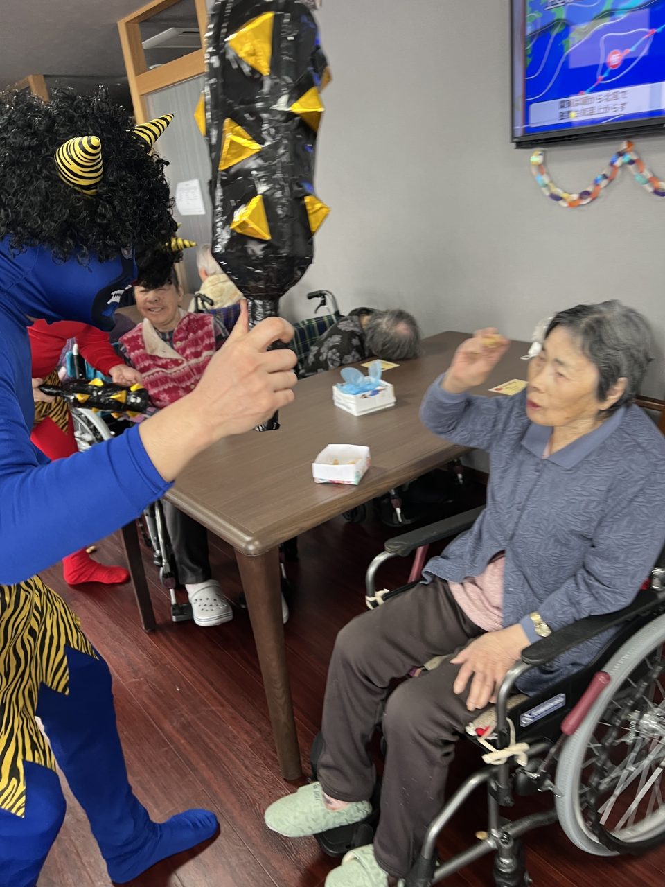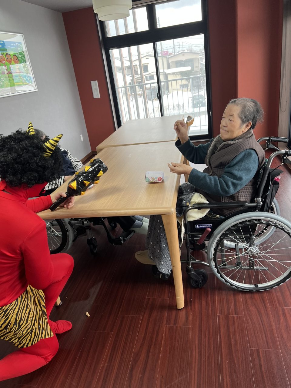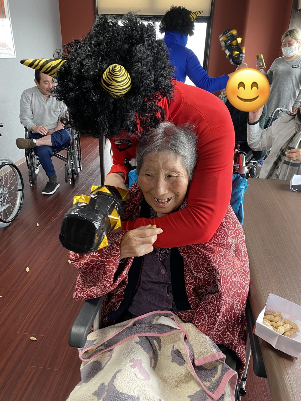 ご飯のあとは、フロアで豆まきを行いました?✨