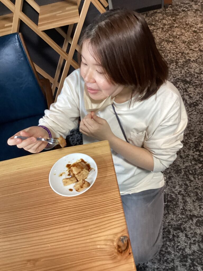 ちゃっかり職員さんも、利用者さんと一緒にわらび餅を召し上がりました?