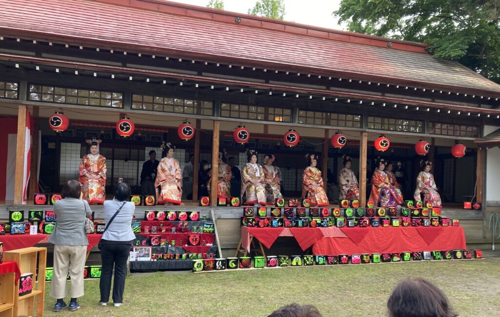 一年以内に結婚した花嫁が花嫁衣装を着て、良縁感謝と末永い幸福を祈願をするため、神社の参道を参列するようになったそうです?最近では幸せな結婚を願う未婚女性も参加しています?