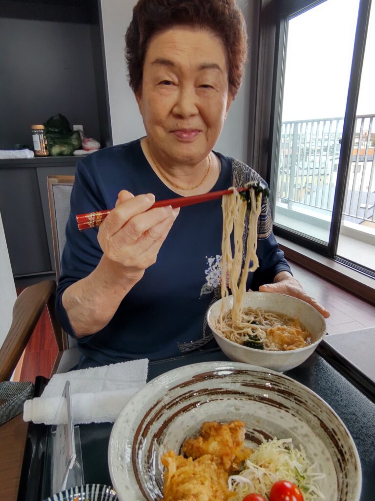 私もご利用者さんからアイデアをいただき、とり天そばにアレンジしていただきました?✨