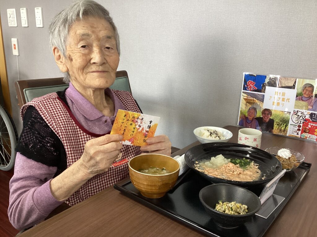 と、ゆう事でさらさ能代でも昼食に、重陽の節句にちなんだ昼食を召し上がりました。