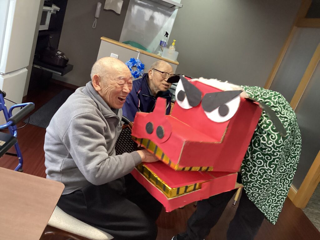 急に、やりたくなったイベントなので、獅子舞は、利用者さんと一緒に手作りしました!