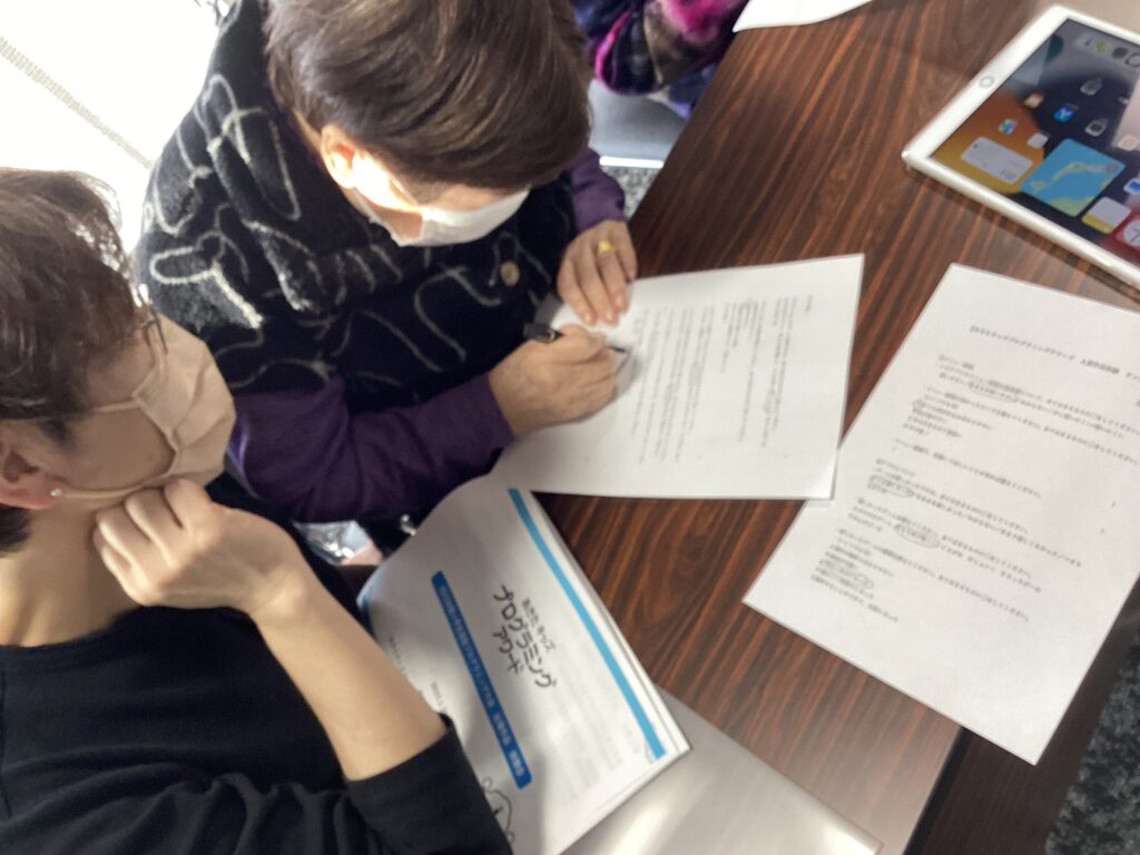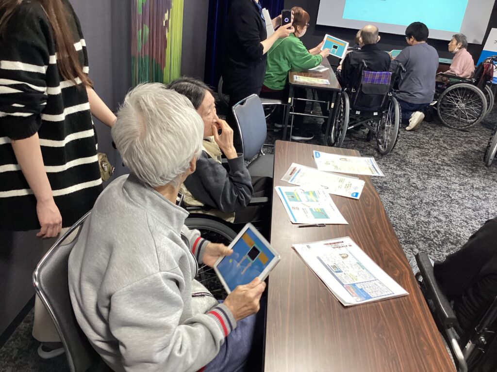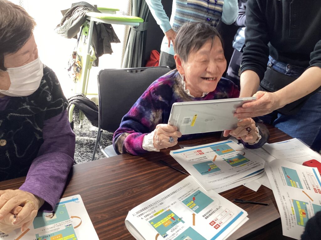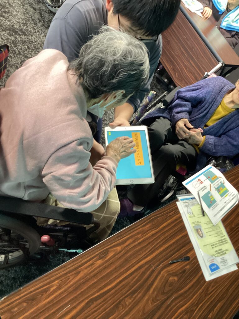 どうしたらもっとより良いアプリになるかな? みんなでアンケートを書き、長谷川さんは利用者さんに聞きながら周りました。