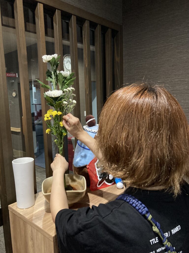 っと!いう事でさらさ能代でも不老長寿を願いまして9月8日に生花が得意の伊藤パートナーに生けていただきました!