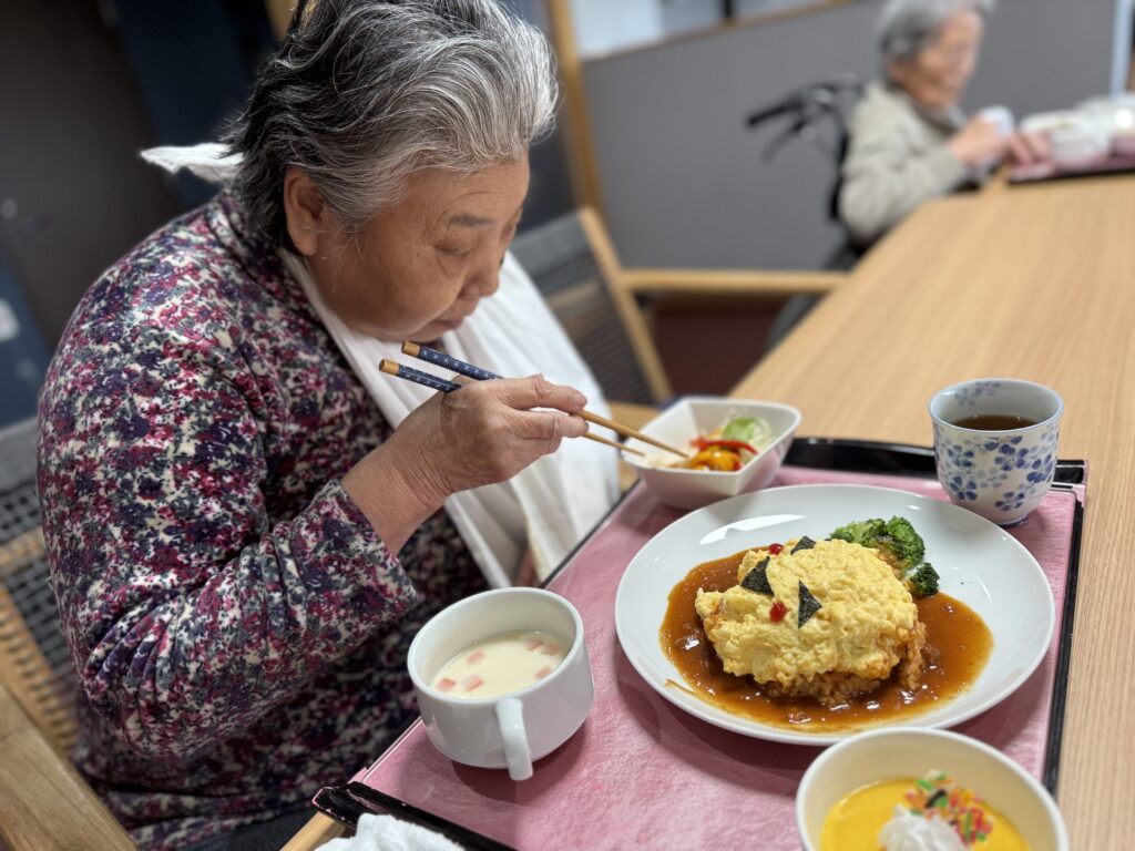 オムライスには顔まで付いてて、とても可愛い&美味しいランチ✨